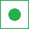 เครื่องหมายสี่เหลี่ยมจัตุรัสสีเขียว มีจุดกลมสีเขียวอยู่ตรงกลาง